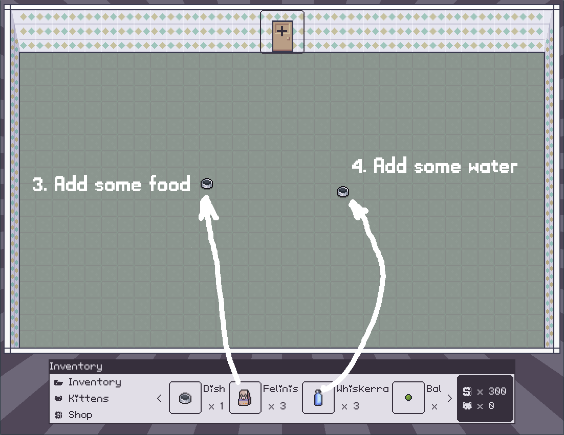 • Place food bowls, feed the kittens, give them water and keep their happiness high.