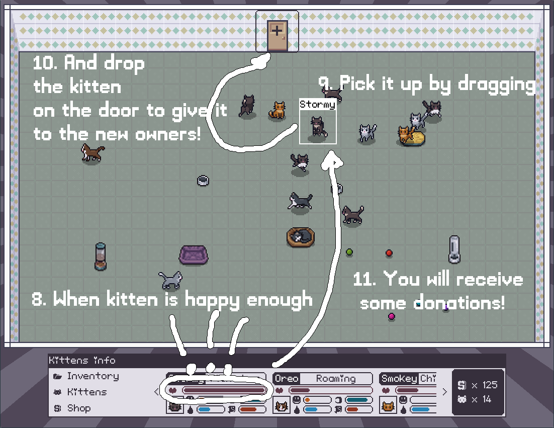 Run a cozy cat shelter: take care of your fluffy residents and match new tail-wagging friends with their forever homes! This mini-game is a simple prototype / tech-demo built to showcase the features of my new asset pack for simulators and tycoons.